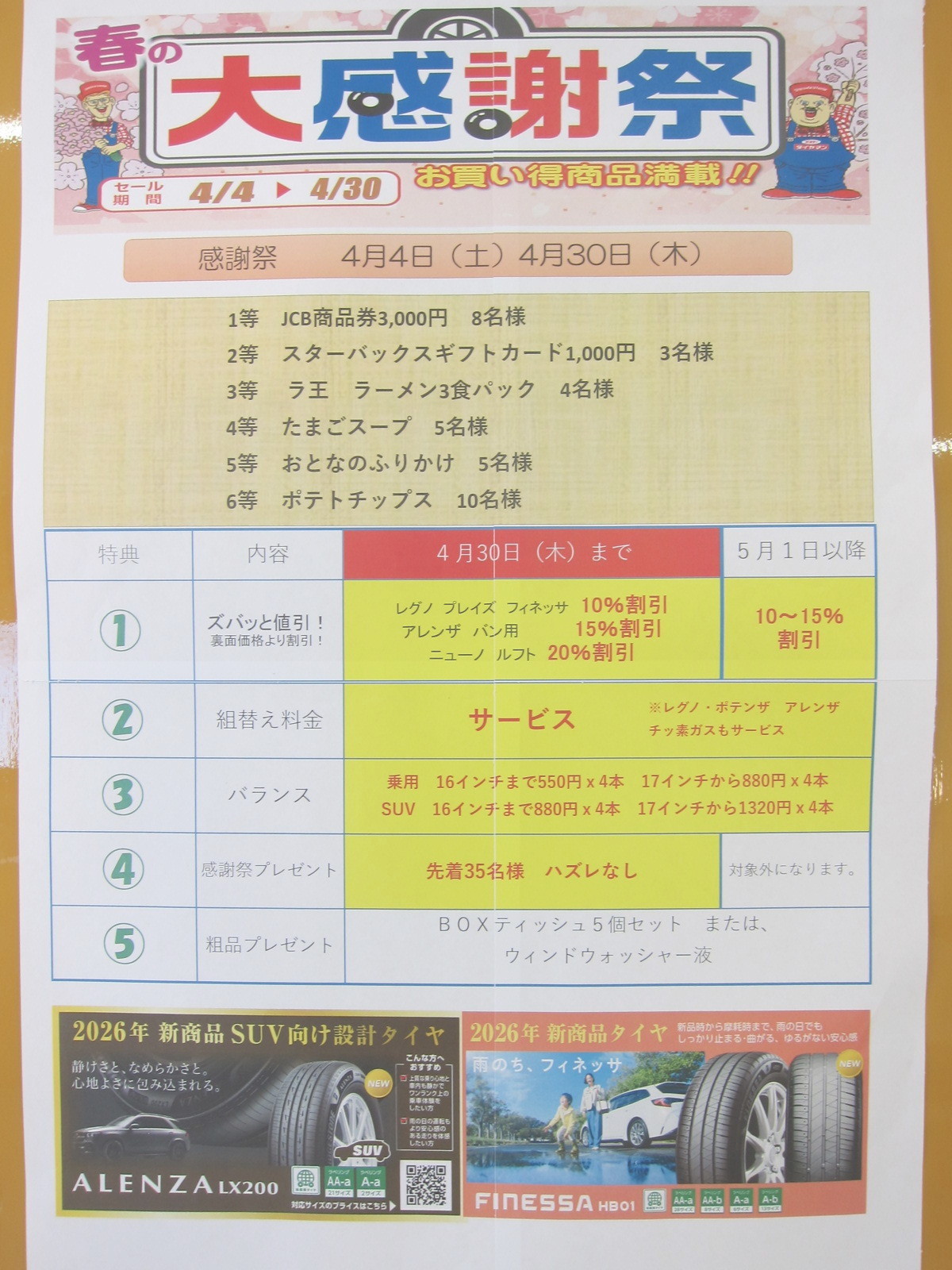 3店舗各1名づつ。卸・小売部門、自動車整備部門、トラックタイヤ販売・作業部門。男女問いません。興味のある方は本社までお問合せ下さい。